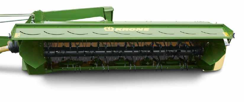 - Full-width conditioning. The tine conditioners on each mower span across the work width from the left to the right top hat, providing a uniform and consistent crop flow across the full width and giving optimum conditioning