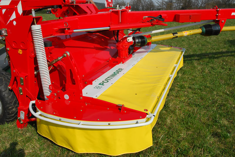 • 3D ground tracking. The cutter bar adapts to any ground contour so that you float cleanly over the sward. Two large dimensioned,easily-adjustable suspension springs guarantee optimum ground pressure in all conditions. Suspending the mower unit from a portal frame gives the cutter bar a great deal of freedom of movement. The cutter bar is lowered with the portal frame, releasing the cutter bar for perfect ground tracking.
