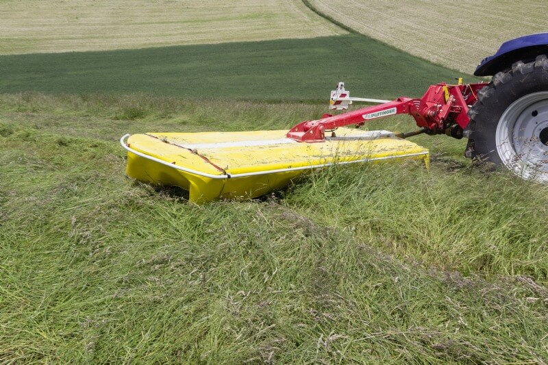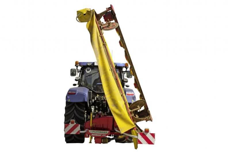 Centre pivot mounting for optimised ground tracking. The NOVACAT centre pivot mounting supports the cutter bar evenly over the entire cutting width. Your mower floats over any ground contour. The mowed crop remains clean and you also save fuel thanks to the reduced power requirement. Due to the uniform cutting height, you benefit from optimum growth and ultimately from higher yields. PÖTTINGER NOVACAT rear mowers can be equipped with swathing discs or a conditioner to meet your individual requirements.