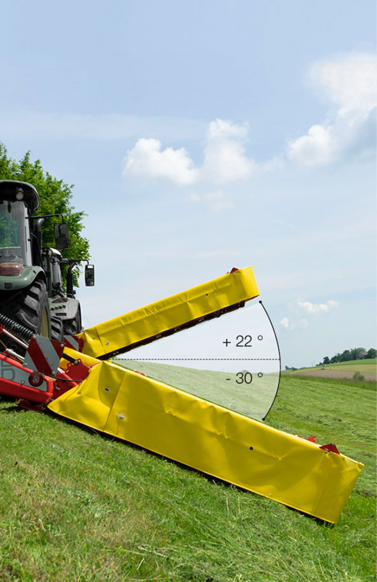 • Able to adapt. The wide + 22/- 30 degree arc of movement enables easy mowing on rough ground and embankments. For a short-time mowing up to + 45° through lifting the interlocking lid is permitted.