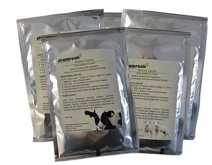 Shamrock Revive is a seaweed-based one sachet remedy that can be used on Calves, Lambs, Fawns, Buffalo Calves and Kids. It's an ACE ( Animal, Consumer and Environmentally friendly) product that contains electrolytes and that can be used for rehydration and diarrhoea.